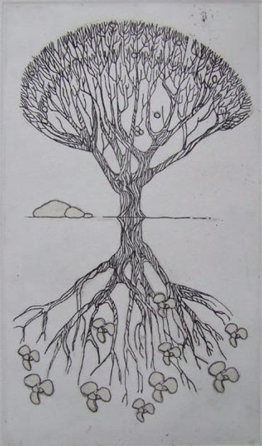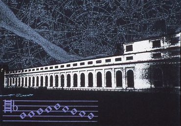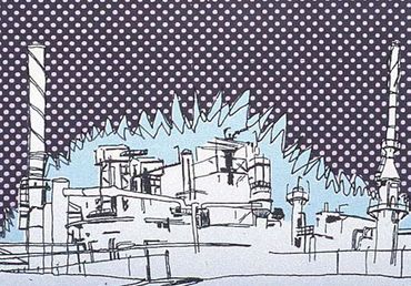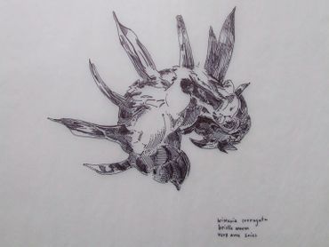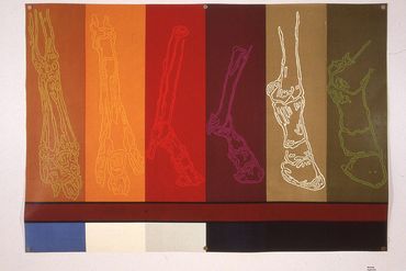 Spring 2004. Pen and ink on paper with monoprint. Individual panels are 152 cm x 76 cm. Sextych measures 152 cm x 456 cm